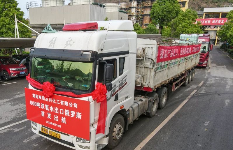 2022年8月,首次通過公海聯(lián)運跨境卡車班列運輸方式出口400噸高純雙氧水至緬甸后,雙陽高科陸續(xù)小批量打入俄羅斯市場,產(chǎn)品質量與服務接續(xù)獲得肯定。2023年4月份,通過銷售團隊努力,再一次先款后貨成功簽約俄羅斯客戶,獲得600噸大訂單。